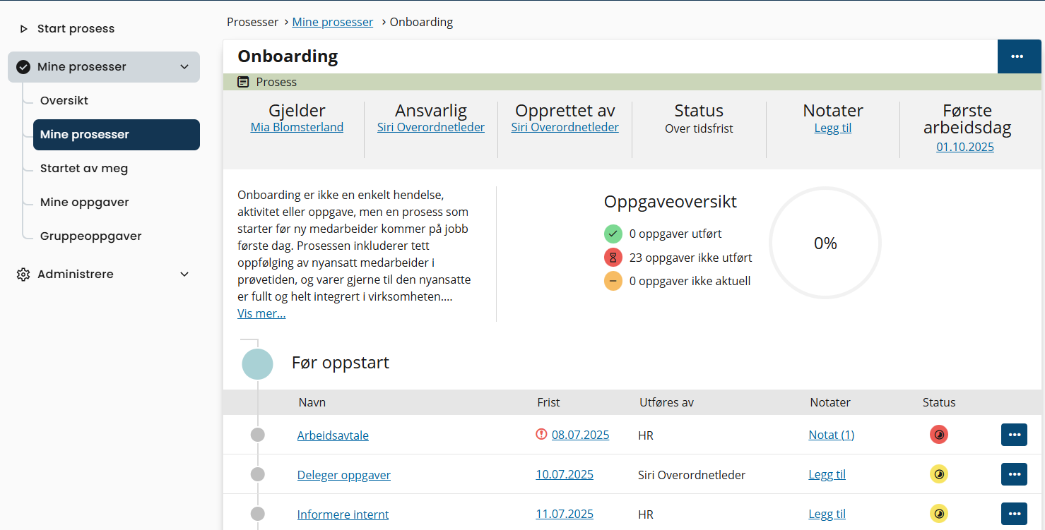 Once you’ve started a process, you’ll see an overview of the process phases and tasks.