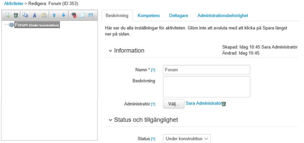 Go to Administer > Learning > Activities
