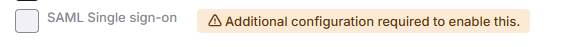 - If SAML SSO is not configured, the SAML checkbox will appear unchecked (but still disabled) with a visual warning message. e,g: