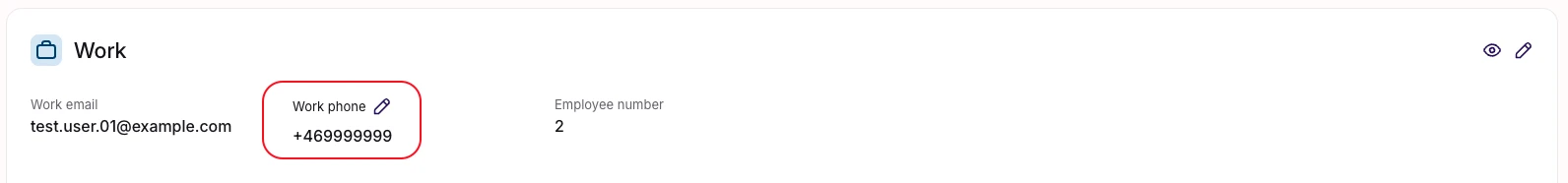 | When editing other Work fields | Phone editable in the same form | Work phone locked (lock icon); not editable in form |