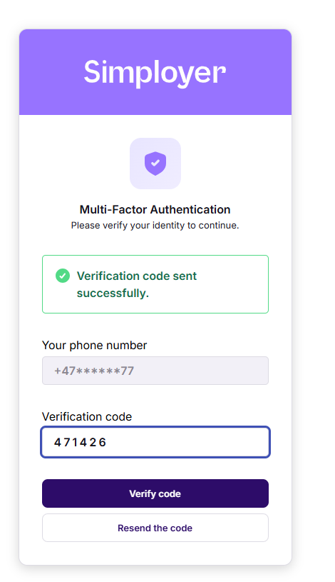 Phone-based two-factor authentication using SMS verification codes via Twilio Verify API.
