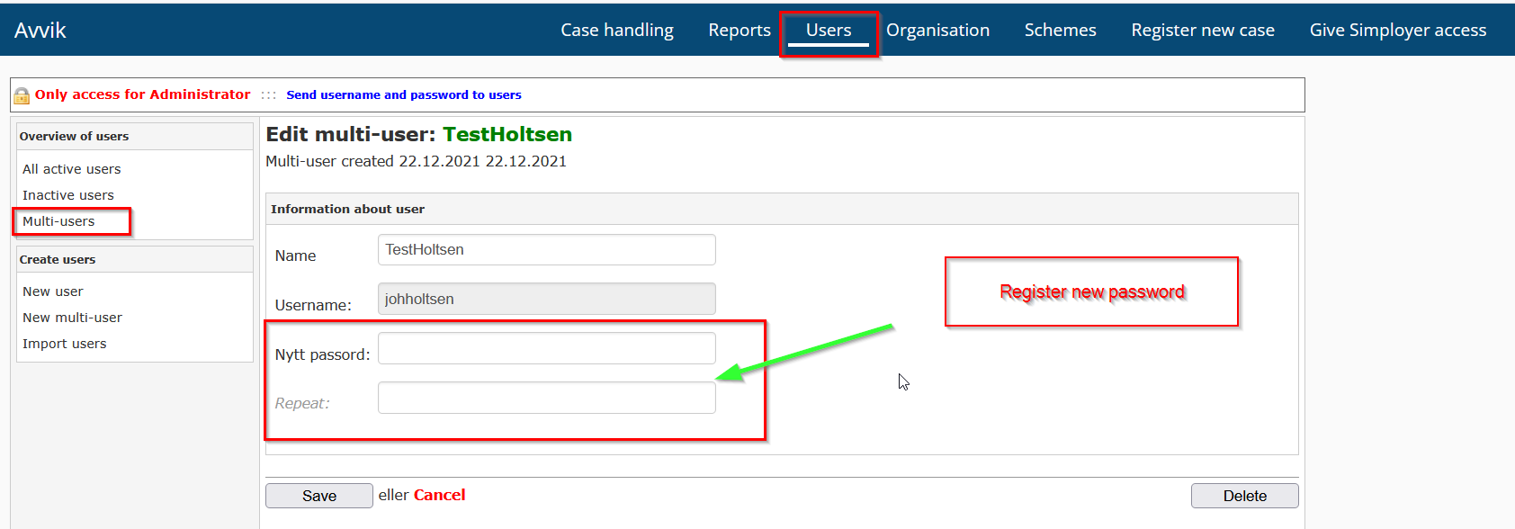 Informera och uppdatera medarbetarna om de nya inloggningsuppgifterna för multi-användaren i avvikelsesystemet.