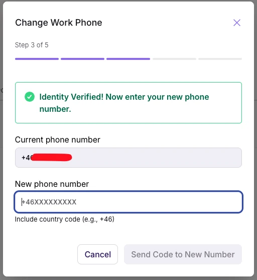 3. Flöde för telefonändring: Verifiera nuvarande, sedan ny